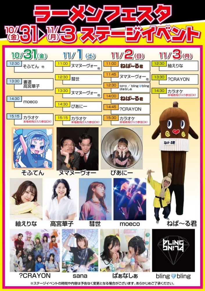 ねば〜る君出演 @11:00〜 A14:00〜 予定