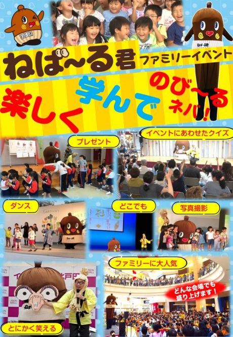 れんらく 2026/03/13 楽しく学べてのび〜るエンタメショー! ねば〜る君の楽しく学んでのび〜るエンタメショー! ねば〜る君に会うと運気・成績・業績のび〜る!? とっても縁起の良いキャラクターです! カワイイしおしゃべりも軽快なんですよ〜!